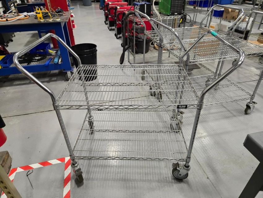 Uline Lot Includes (3) 2-Tier Wire Carts (no contents). HIT# 2477709. Unit 1 Back. Asset Located at 53 Brigham St. Unit 8, Marlborough, MA 01752. ***Auctioneer Notice*** Payment for this lot is due by no later than November 10, 2025. Removal of this lot is from November 17 - December 10, closed for Thanksgiving November 26-28. Lots not removed by close of business on December 12, 2025, will be deemed abandoned without refund or recourse.