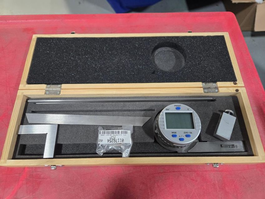 SPI/Machine-DRO Measuring Tools to Include: Machine-DRO Digital Caliper; SPI Bevel Protractor w/ Acute Angle Attachment; SPI Digital Bevel Protractor. HIT# 2476967. Unit 3 Inspection Room. Asset Located at 53 Brigham St. Unit 8, Marlborough, MA 01752. ***Auctioneer Notice*** Payment for this lot is due by no later than November 10, 2025. Removal of this lot is from November 17 - December 10, closed for Thanksgiving November 26-28. Lots not removed by close of business on December 12, 2025, will be deemed abandoned without refund or recourse.