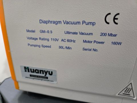 Huanyu GM-0.5 Diaphragm Vacuum Pump, Speed 30L.min, 160W Motor, 200Mbar, 110V. HIT# 2476870. Unit 8 Front. Asset Located at 53 Brigham St. Unit 8, Marlborough, MA 01752. ***Auctioneer Notice*** Payment for this lot is due by no later than November 10, 2025. Removal of this lot is from November 17 - December 10, closed for Thanksgiving November 26-28. Lots not removed by close of business on December 12, 2025, will be deemed abandoned without refund or recourse.