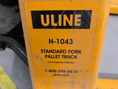 Uline/Pallet Truck H-1043/EZ Lift Lot Includes (2) Pallet Jacks, Capacity 5500lb. HIT# 2477635. Unit 7 Center. Asset Located at 53 Brigham St. Unit 8, Marlborough, MA 01752. ***Auctioneer Notice*** Payment for this lot is due by no later than November 10, 2025. Removal of this lot is from November 17 - December 10, closed for Thanksgiving November 26-28. Lots not removed by close of business on December 12, 2025, will be deemed abandoned without refund or recourse.