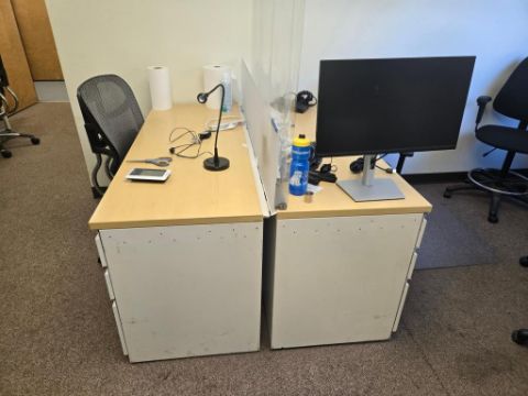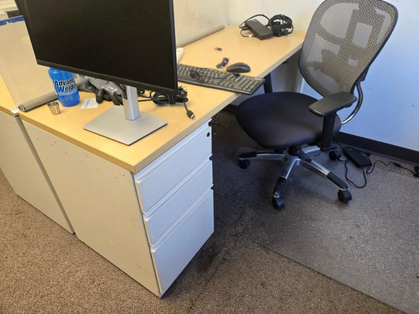 Office Furniture: (5) Desks; (5) Mesh Backed Adjustable Height Chairs w/ Casters; (6) Stackable Chairs; Table; (3) Desk Fans (no contents). HIT# 2477791. Unit 1 Office. Asset Located at 53 Brigham St. Unit 8, Marlborough, MA 01752. ***Auctioneer Notice*** Payment for this lot is due by no later than November 10, 2025. Removal of this lot is from November 17 - December 10, closed for Thanksgiving November 26-28. Lots not removed by close of business on December 12, 2025, will be deemed abandoned without refund or recourse.