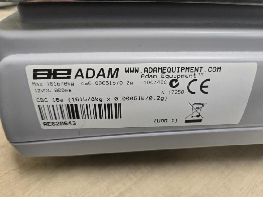 Adam CBC-15A Scale/Counter, Max 16lb/8kgx0,0005lbs/0.2g. SN# AE620643. HIT# 2476930. Unit 3 Inspection Room. Asset Located at 53 Brigham St. Unit 8, Marlborough, MA 01752. ***Auctioneer Notice*** Payment for this lot is due by no later than November 10, 2025. Removal of this lot is from November 17 - December 10, closed for Thanksgiving November 26-28. Lots not removed by close of business on December 12, 2025, will be deemed abandoned without refund or recourse.