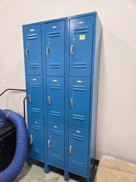 Lot Includes: (9) Sections of Blue Combination Lock Style Lockers. HIT# 2477575. Unit 4/Unit 8 Office. Asset Located at 53 Brigham St. Unit 8, Marlborough, MA 01752. ***Auctioneer Notice*** Payment for this lot is due by no later than November 10, 2025. Removal of this lot is from November 17 - December 10, closed for Thanksgiving November 26-28. Lots not removed by close of business on December 12, 2025, will be deemed abandoned without refund or recourse.
