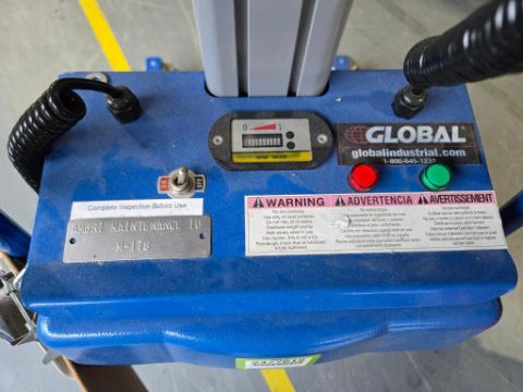 Global E100R 2020 Portable Battery Powered Lift Truck/Stacker, Capacity 100Kg/220lb . SN# 1910115. HIT# 2477615. Unit 3 Front. Asset Located at 53 Brigham St. Unit 8, Marlborough, MA 01752. ***Auctioneer Notice*** Payment for this lot is due by no later than November 10, 2025. Removal of this lot is from November 17 - December 10, closed for Thanksgiving November 26-28. Lots not removed by close of business on December 12, 2025, will be deemed abandoned without refund or recourse.