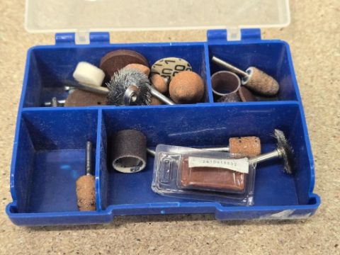 Lot of Electric Tool Kits & Accessories to Include: Black & Decker RTX3S Tungsten Grinding Tool; Dremel Model 290-01 Engraving Tool; Dremel 4000 Rotary Tool; Engindot Rotary Tool Accessory Kit; Ideal Electric Marker, etc. (see pictures for details). HIT# 2477687. Unit 8 Front. Asset Located at 53 Brigham St. Unit 8, Marlborough, MA 01752. ***Auctioneer Notice*** Payment for this lot is due by no later than November 10, 2025. Removal of this lot is from November 17 - December 10, closed for Thanksgiving November 26-28. Lots not removed by close of business on December 12, 2025, will be deemed abandoned without refund or recourse.