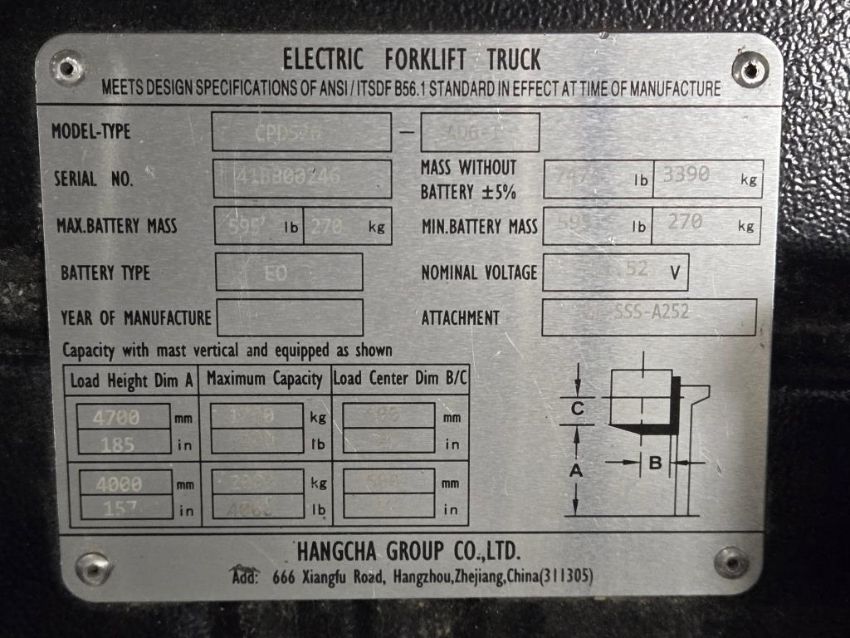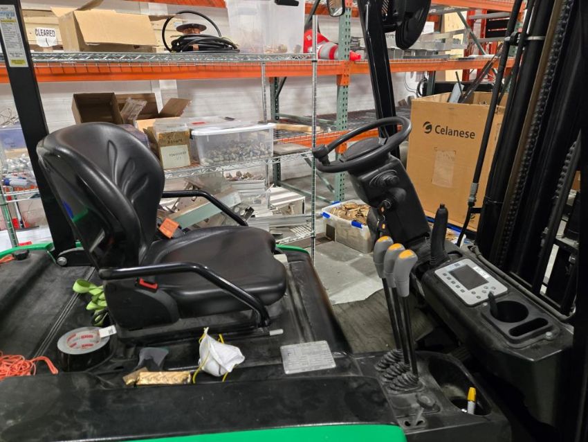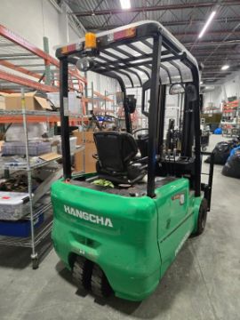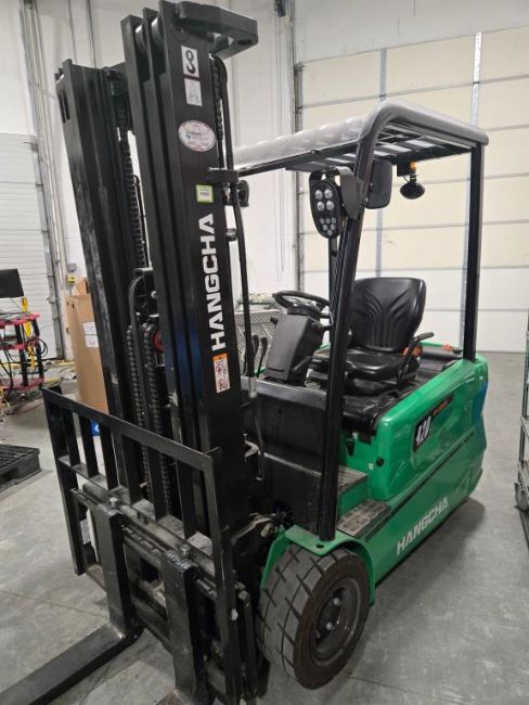 Hangcha CPDS25-406I 48V Electric Forklift, Capacity 5000lb., Mast Height 159", Side/Tilt/Up-Down Shift. Truck Weight w/ Battery 3.92T. Includes SPE Model GREENUL48V095A 48V Battery Charger. * Forklift Will be a Late Removal - Date TBD.* SN# 41BB00246. HIT# 2477642. Unit 6 Front. Asset Located at 53 Brigham St. Unit 8, Marlborough, MA 01752. ***Auctioneer Notice*** Payment for this lot is due by no later than November 10, 2025. Removal of this lot is from November 17 - December 10, closed for Thanksgiving November 26-28. Lots not removed by close of business on December 12, 2025, will be deemed abandoned without refund or recourse.