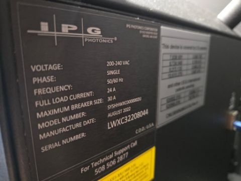 IPG Photonics LightWeldXC Portable Handheld Laser Welding System w/ WF-007A Multi Function Auto TIG Wire Feeder. Includes: XC Welding Plus Cleaning System; Accessories; Kentek KCM-6204 Safety Glasses; Welding Mask; Gloves; Floor Mat; Lenovo T480s Laptop w/ Windows. SN# LWXC32208044/220701022. HIT# 2477011. Unit 2 Back. Asset Located at 53 Brigham St. Unit 8, Marlborough, MA 01752. ***Auctioneer Notice*** Payment for this lot is due by no later than November 10, 2025. Removal of this lot is from November 17 - December 10, closed for Thanksgiving November 26-28. Lots not removed by close of business on December 12, 2025, will be deemed abandoned without refund or recourse.