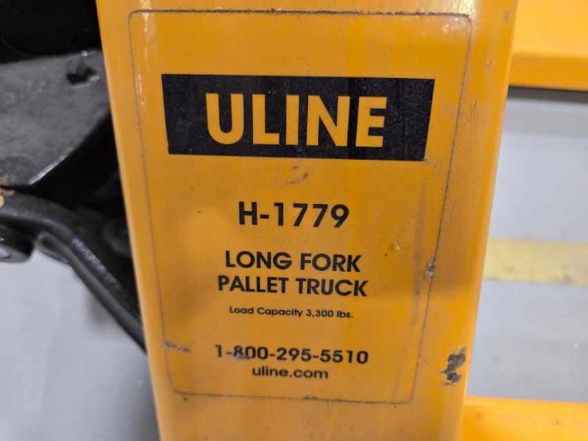 Uline H-1779 Lot Includes Long Fork Pallet Jack, Capacity 3300lb. HIT# 2477637. Unit 7 Left. Asset Located at 53 Brigham St. Unit 8, Marlborough, MA 01752. ***Auctioneer Notice*** Payment for this lot is due by no later than November 10, 2025. Removal of this lot is from November 17 - December 10, closed for Thanksgiving November 26-28. Lots not removed by close of business on December 12, 2025, will be deemed abandoned without refund or recourse.