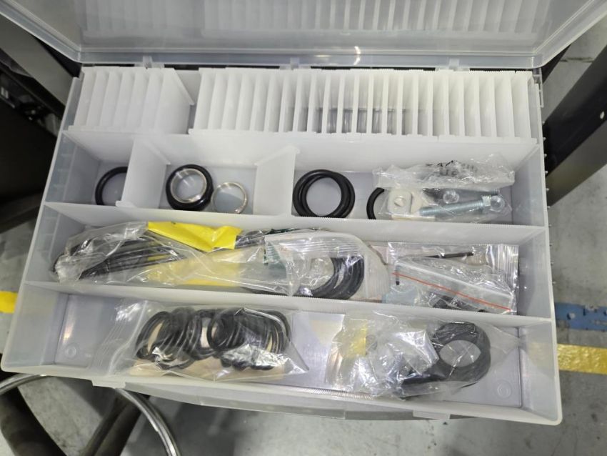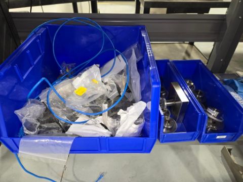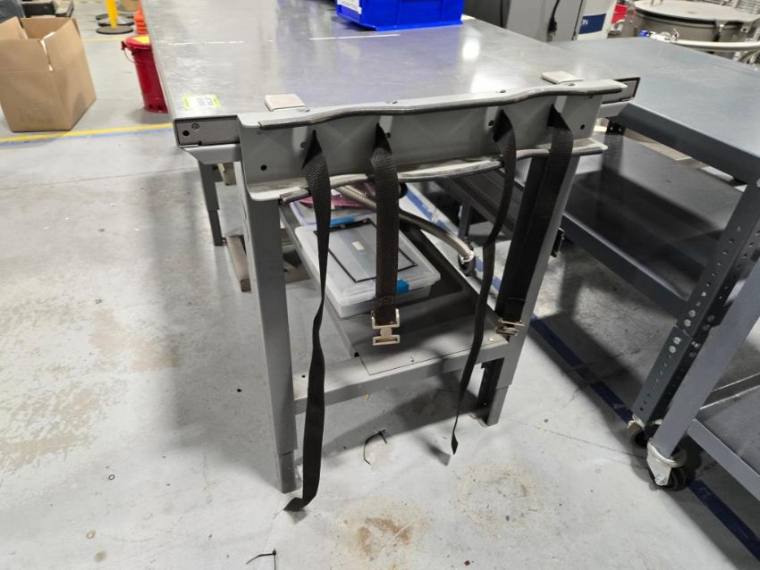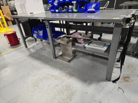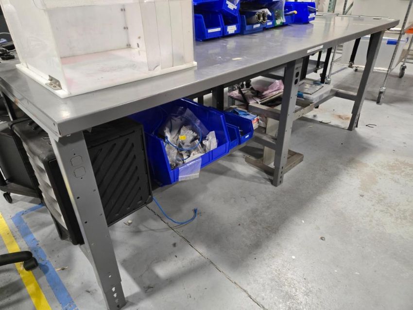 Adjustable Height Metal Table, 96"x30" w/ Contents Consisting of: SS Fixtures; Bins; Parts Cabinet w/ Contents; Hand Tools, etc.(SAS enclosure not included). HIT# 2477610. Unit 2 Back. Asset Located at 53 Brigham St. Unit 8, Marlborough, MA 01752. ***Auctioneer Notice*** Payment for this lot is due by no later than November 10, 2025. Removal of this lot is from November 17 - December 10, closed for Thanksgiving November 26-28. Lots not removed by close of business on December 12, 2025, will be deemed abandoned without refund or recourse.