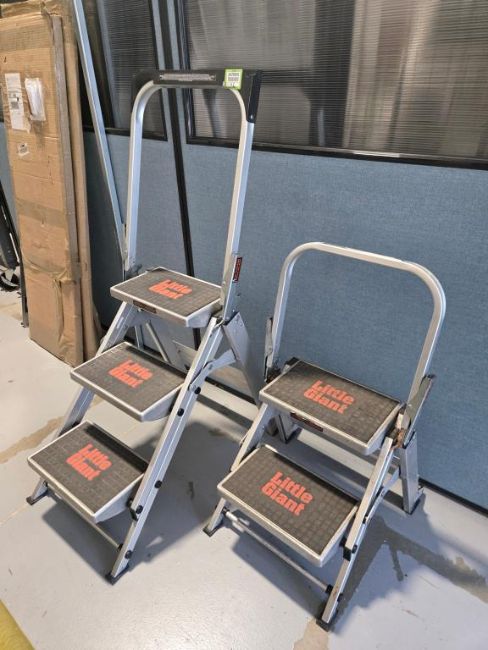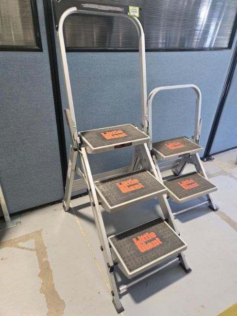 Little Giant 2 & 3 Step Safety Step Ladders. HIT# 2476905. Unit 8 Front. Asset Located at 53 Brigham St. Unit 8, Marlborough, MA 01752. ***Auctioneer Notice*** Payment for this lot is due by no later than November 10, 2025. Removal of this lot is from November 17 - December 10, closed for Thanksgiving November 26-28. Lots not removed by close of business on December 12, 2025, will be deemed abandoned without refund or recourse.
