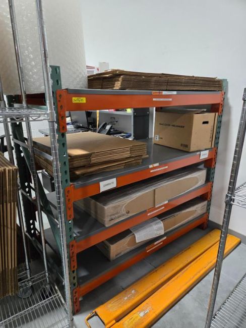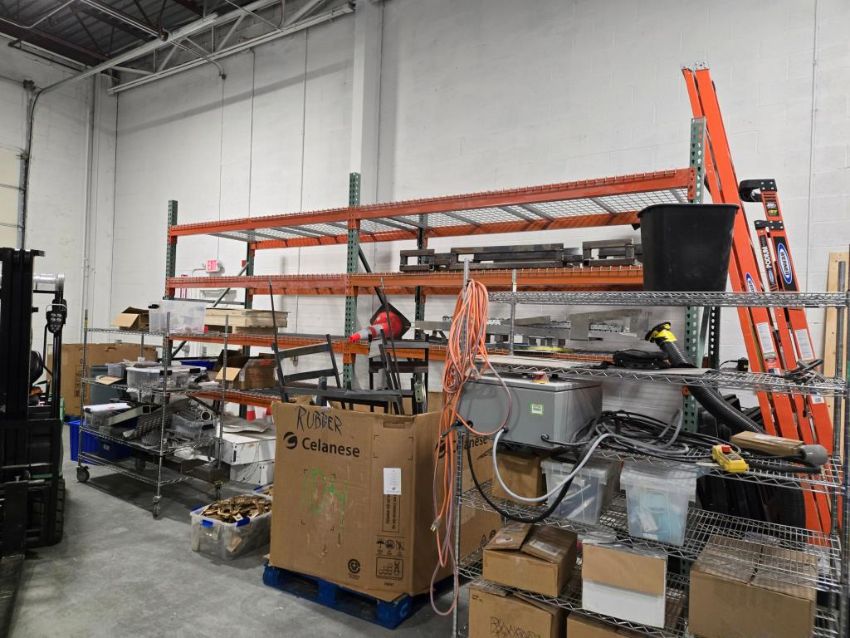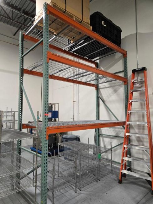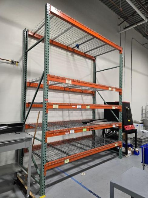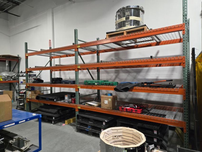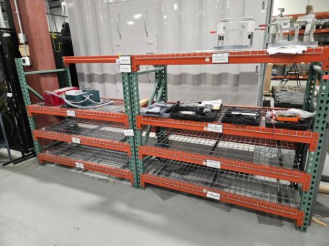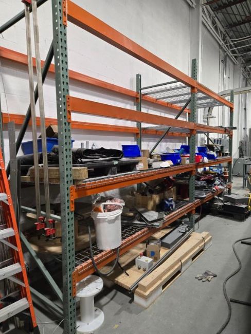 Lot Includes (35) Sections of Pallet Racking: (27) 10' Uprights; (16) 12' Uprights; (15) 5' Uprights; (164) 5"x9' Cross Beams; (10) 5"x10' Cross Beams; (53) 4"x5' Cross Beams; (24) 2.5"x4' Cross Beams; (176) 4'x4' Wire Shelves; (33) 30"x5' Wire Shelves; (10) 52"x48" Wire Shelves (no contents). HIT# 2477633. Unit 1,2,3,6,7,8. Asset Located at 53 Brigham St. Unit 8, Marlborough, MA 01752. ***Auctioneer Notice*** Payment for this lot is due by no later than November 10, 2025. Removal of this lot is from November 17 - December 10, closed for Thanksgiving November 26-28. Lots not removed by close of business on December 12, 2025, will be deemed abandoned without refund or recourse.