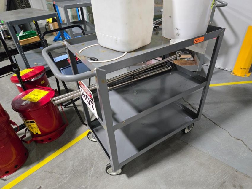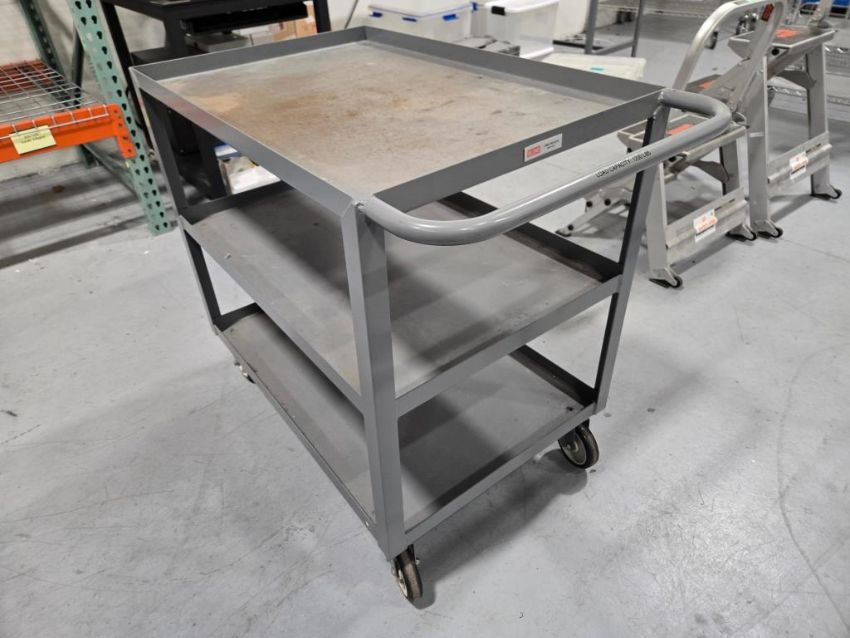 Uline Lot Includes (5) 2 & 3-Tier Steel Carts, Capacity 1200lb. & 2-Tier Steel Table (no contents). HIT# 2477623. Unit 2 Back/Unit 3 Front/Unit 6 Back. Asset Located at 53 Brigham St. Unit 8, Marlborough, MA 01752. ***Auctioneer Notice*** Payment for this lot is due by no later than November 10, 2025. Removal of this lot is from November 17 - December 10, closed for Thanksgiving November 26-28. Lots not removed by close of business on December 12, 2025, will be deemed abandoned without refund or recourse.