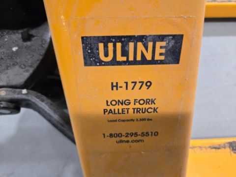 Uline H-1779 Lot Includes (2) Long Fork Pallet Jack, Capacity 3300lb. HIT# 2477636. Unit 7 Center. Asset Located at 53 Brigham St. Unit 8, Marlborough, MA 01752. ***Auctioneer Notice*** Payment for this lot is due by no later than November 10, 2025. Removal of this lot is from November 17 - December 10, closed for Thanksgiving November 26-28. Lots not removed by close of business on December 12, 2025, will be deemed abandoned without refund or recourse.