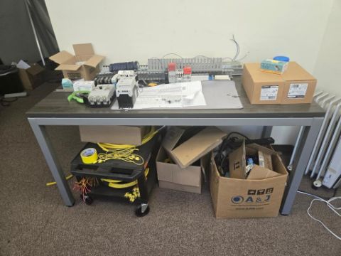 Contents of Room to Include: Tables; Electronic Components; Electrical Equipment & Supplies; Monitors; Cables; Power Supplies; Relays; Fuses; Switches, etc. (see pictures for details). HIT# 2477731. Unit 1 Offices. Asset Located at 53 Brigham St. Unit 8, Marlborough, MA 01752. ***Auctioneer Notice*** Payment for this lot is due by no later than November 10, 2025. Removal of this lot is from November 17 - December 10, closed for Thanksgiving November 26-28. Lots not removed by close of business on December 12, 2025, will be deemed abandoned without refund or recourse.