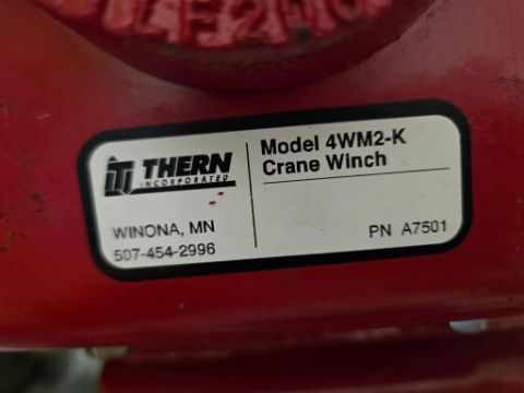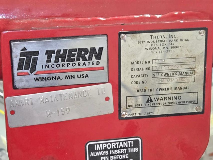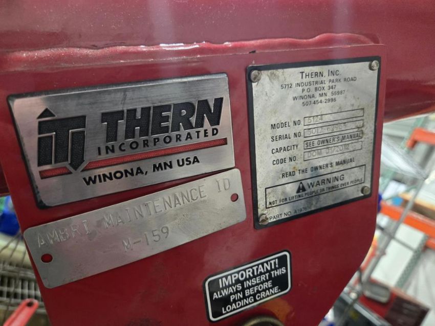 Thern Inc. 4WM2-K/5124 Portable Shop Crane Winch System. SN# 5012-6Z965. HIT# 2476914. Unit 8 Back. Asset Located at 53 Brigham St. Unit 8, Marlborough, MA 01752. ***Auctioneer Notice*** Payment for this lot is due by no later than November 10, 2025. Removal of this lot is from November 17 - December 10, closed for Thanksgiving November 26-28. Lots not removed by close of business on December 12, 2025, will be deemed abandoned without refund or recourse.