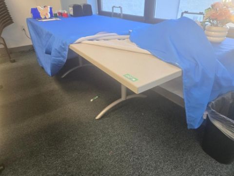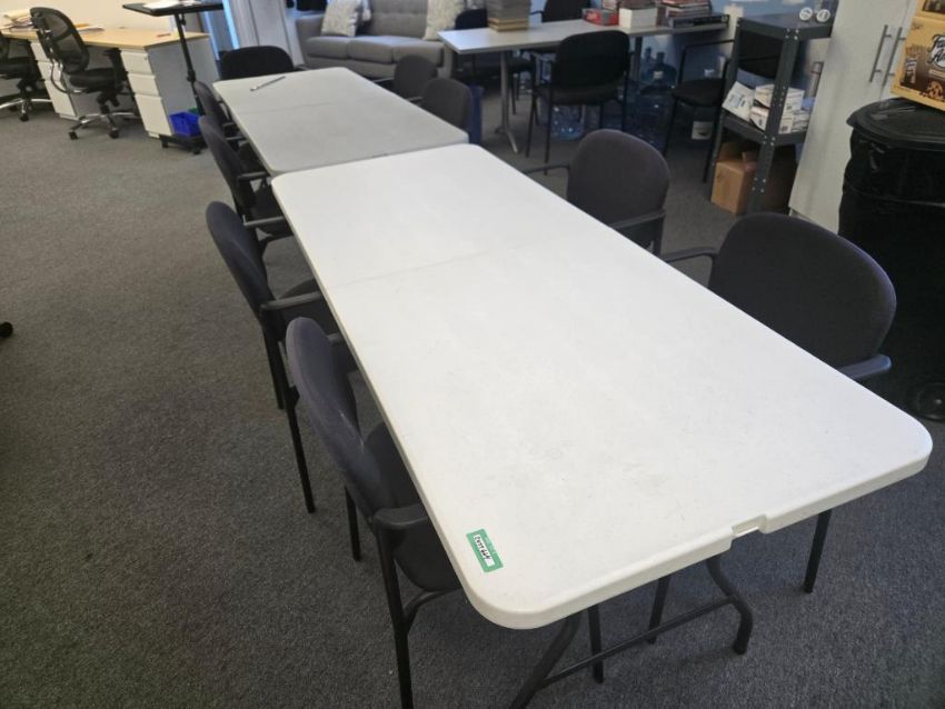 Lot Includes (5) Poly Folding Tables & (1) Poly Folding Chair. HIT# 2477664. Unit 3/Unit 8. Asset Located at 53 Brigham St. Unit 8, Marlborough, MA 01752. ***Auctioneer Notice*** Payment for this lot is due by no later than November 10, 2025. Removal of this lot is from November 17 - December 10, closed for Thanksgiving November 26-28. Lots not removed by close of business on December 12, 2025, will be deemed abandoned without refund or recourse.