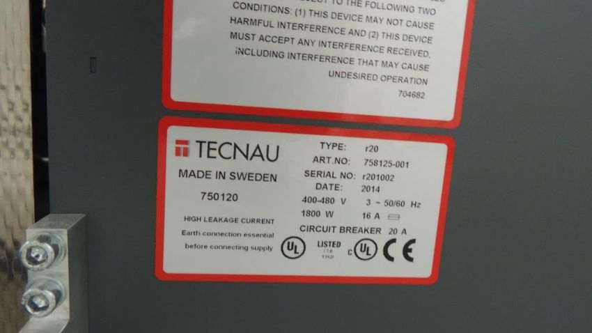 Tecnau Model r20 Tecnau Model r20 Mfg. 2014, ART. NO: 758125-001, 400-480V, 3-50/60Hz, 1800W, 16A. See Photos for More Information. SN# r201002. HIT# 2509888. Production Area. Asset Located at 2121 Providence Drive Ste. 151, Fort Worth, TX 76106. SN# r201002. HIT# 2509888. Production Area. Asset Located at 2121 Providence Drive Ste. 151, Fort Worth, TX 76106.