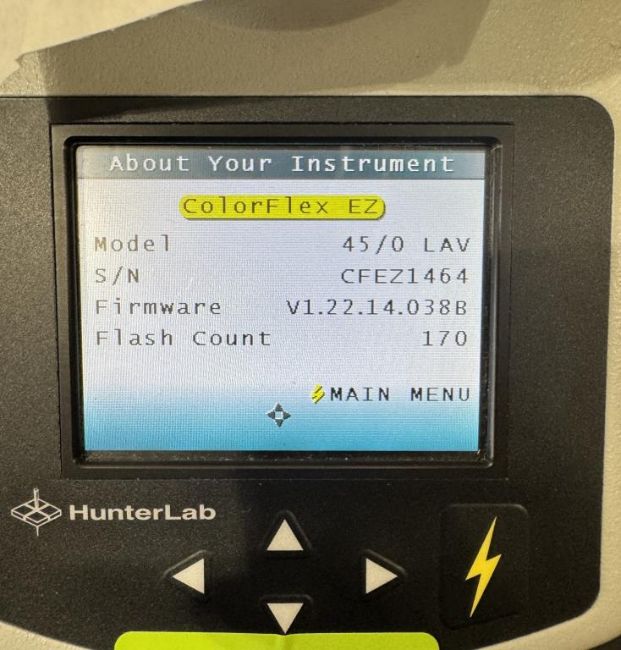 HunterLab 45/0 ColorFlex EZ Spectrophotometer. S/N CFEZ1464. HIT # 2526615. Asset Located at 9687 Distribution Ave., San Diego, CA 92121.