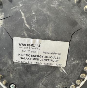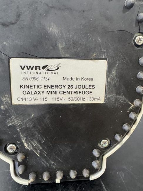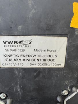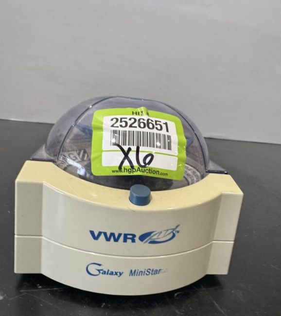 VWR C1413 Lot includes (6) Galaxy MiniStar Microcentrifuges. S/N 0906 1134, 0906 1138, 0906 1129, 090 HIT # 2526651. Asset Located at 9687 Distribution Ave., San Diego, CA 92121.