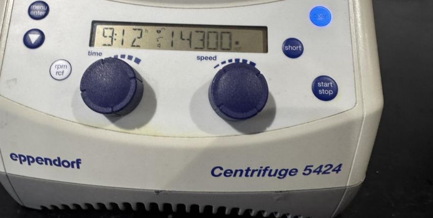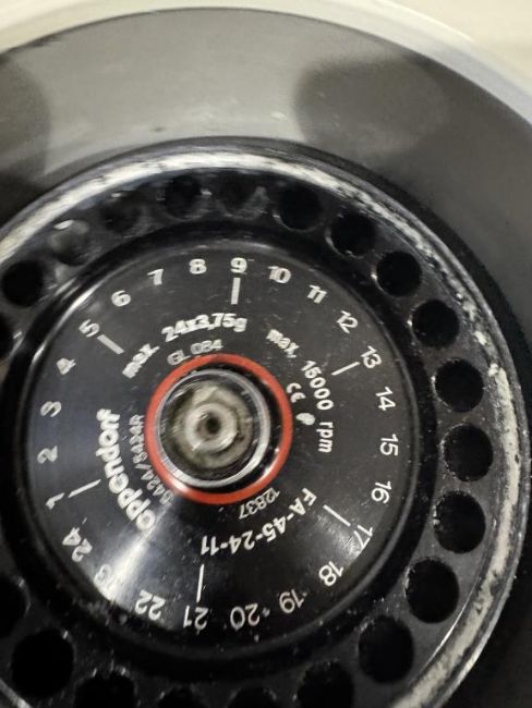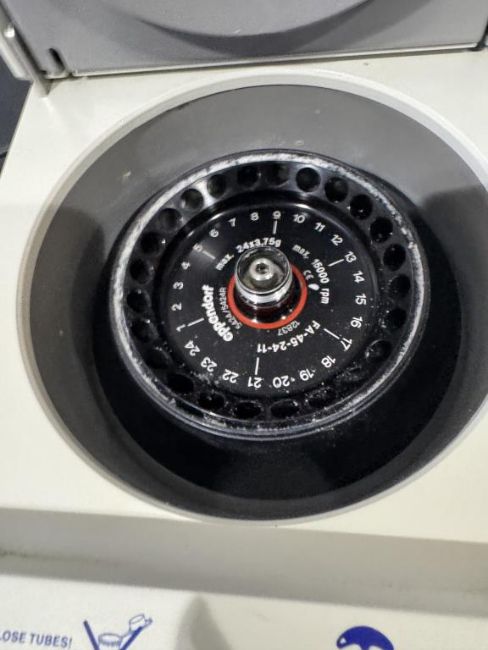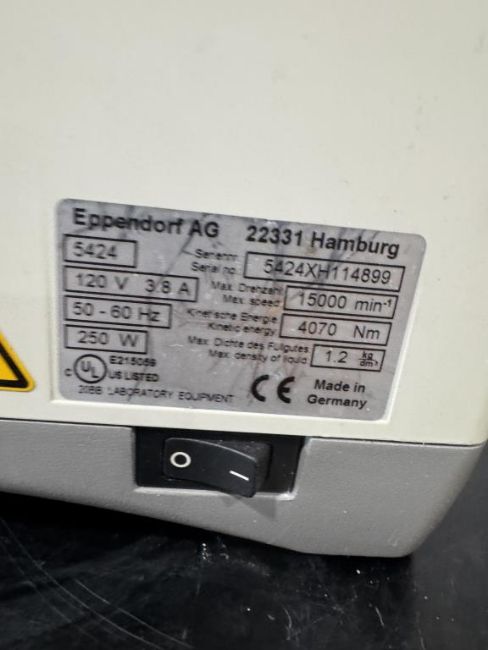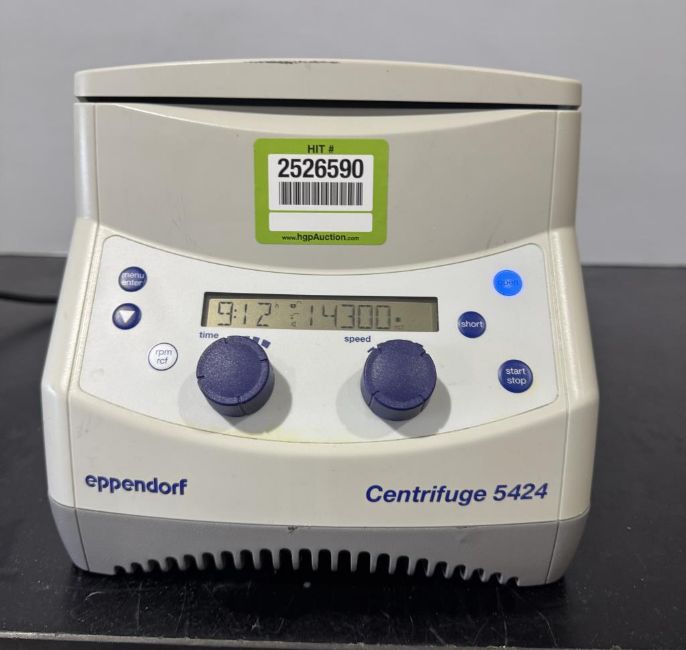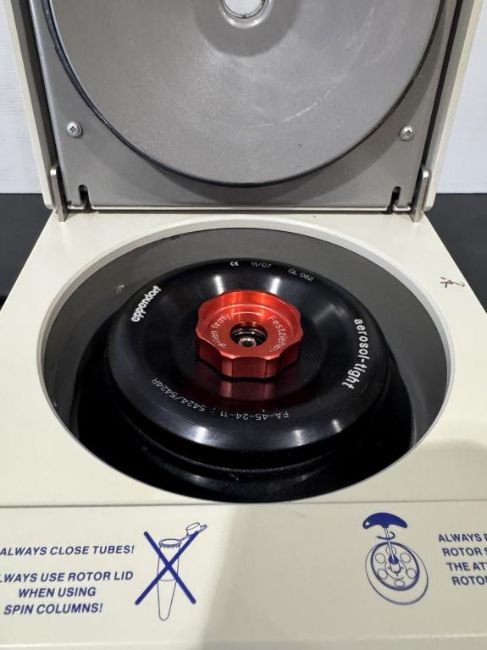 Eppendorf 5424 Benchtop Centrifuge with FA-45-24-11 Fixed Angle Rotor. S/N 5424XH114899. HIT # 2526590. Asset Located at 9687 Distribution Ave., San Diego, CA 92121.