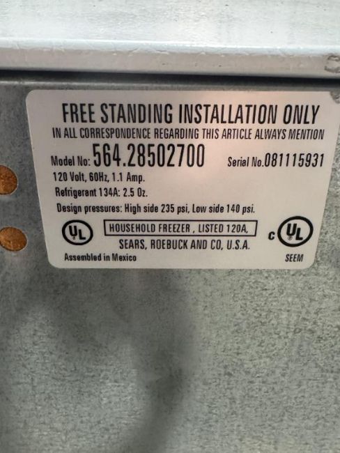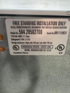 Kenmore 564.29 Undercounter Freezer. S/N 081115931. HIT # 2526632. Asset Located at 9687 Distribution Ave., San Diego, CA 92121.