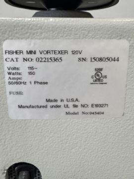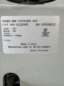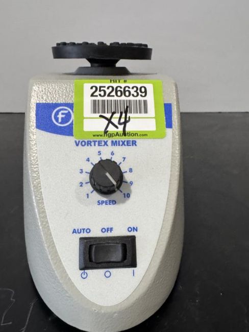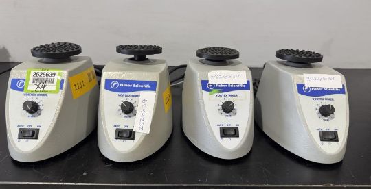 Fisher Scientific 2215365 Lot includes (4) Analog Vortex Mixers. S/N 150815044, 150528022, 080305037, 131 HIT # 2526639. Asset Located at 9687 Distribution Ave., San Diego, CA 92121.
