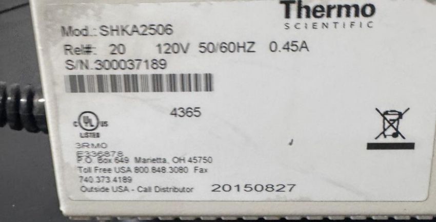 Thermo Scientific SHKA2506 MaxQ 2506 Reciprocating Orbital Shaker. S/N 300037189. HIT # 2526673. Asset Located at 9687 Distribution Ave., San Diego, CA 92121.