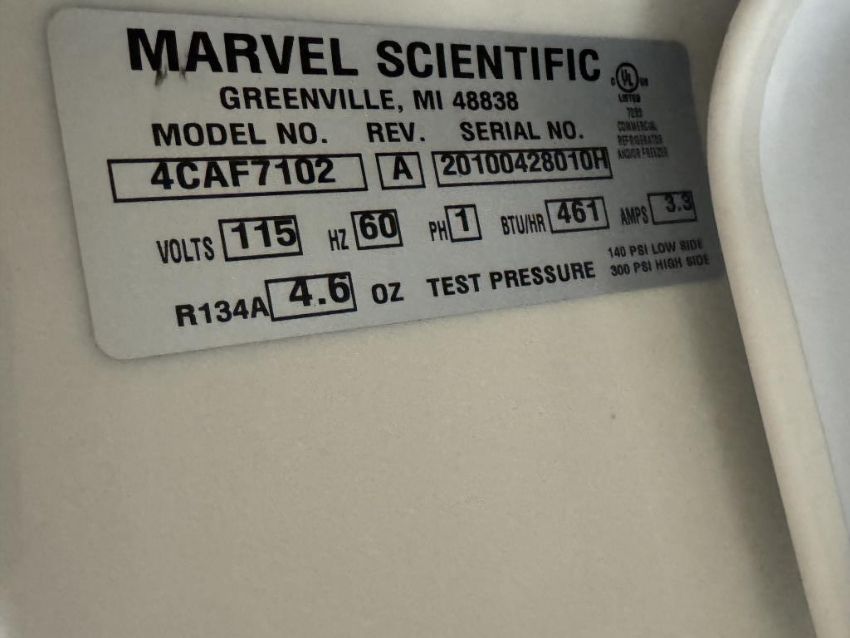Marvel Scientific 4CAF7102 Undercounter Refrigerator/Freezer. S/N 20100428010H. HIT # 2526672. Asset Located at 9687 Distribution Ave., San Diego, CA 92121.