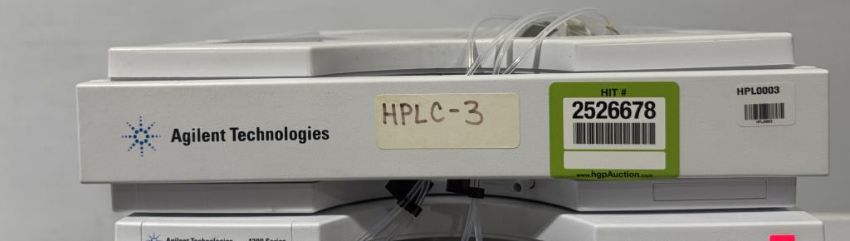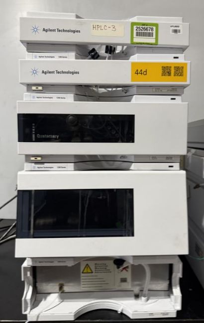 Agilent 1200 Series HPLC System includes (3) Reservoir Trays, G1322A Degasser, G1311A Quaternary Pump, G1367B HiP-ALS Autosampler, G1330B FC/ALS Therm, G1315D DAD Degasser, G1365D MWD Multiwavelength Detector. S/N JP73064259, DE62972338, DE64557090, HIT # 2526678. Asset Located at 9687 Distribution Ave., San Diego, CA 92121.