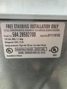 Kenmore 564.29 Undercounter Freezer. S/N 071118793. HIT # 2526631. Asset Located at 9687 Distribution Ave., San Diego, CA 92121.