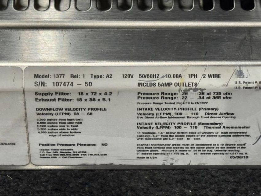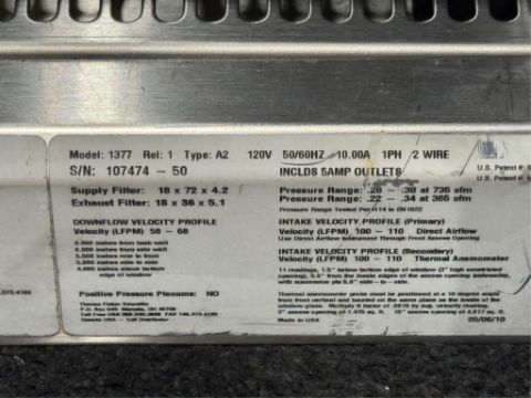 Thermo Fisher Scientific 1377 6ft. 1300 Series Type A2 Biological Safety Cabinet with Stand. S/N 107474-50. HIT # 2526608. Asset Located at 9687 Distribution Ave., San Diego, CA 92121.