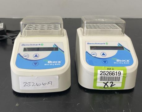 Benchmark Scientific BSH200 Lot includes (2) myBLOCK Mini Dry Baths. S/N AS-BSH200-373, AS-BSH200-2711. HIT # 2526619. Asset Located at 9687 Distribution Ave., San Diego, CA 92121.