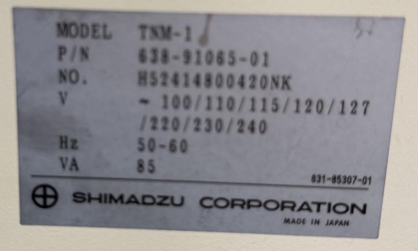 Shimadzu TOC-VCSH Total Organic Carbon Analyzer includes TNM-1 Total Nitrogen Measuring Unit, ASI-V Autosampler, Computer and Metro Rack. S/N H51114800202, H52414800420, H5210480 HIT # 2526708. Asset Located at 9687 Distribution Ave., San Diego, CA 92121.