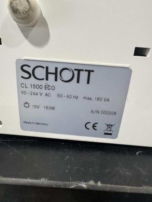 Schott CL 1500 ECO Fiber Optic Light Source for Microscope. S/N 000208. HIT # 2526676. Asset Located at 9687 Distribution Ave., San Diego, CA 92121.