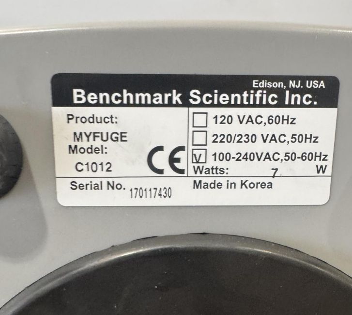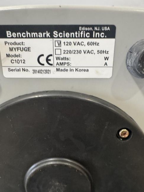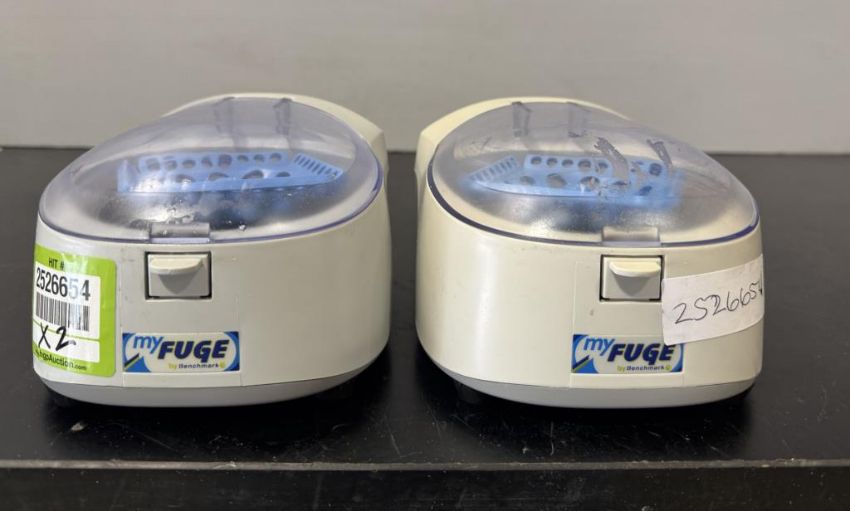 Benchmark Scientific C1012 Lot includes (3) myFUGE Microcentrifuges. S/N 170117430, 20140212021. HIT # 2526654. Asset Located at 9687 Distribution Ave., San Diego, CA 92121.