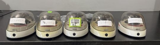Fisher Scientific Sprout Lot includes (5) Microcentrifuges (only 2 Power Supplies). S/N HSC33714, HSD42260, HSE52020, HSC333 HIT # 2526652. Asset Located at 9687 Distribution Ave., San Diego, CA 92121.