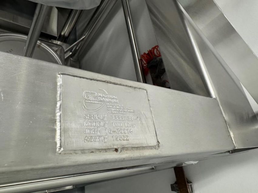 G2 Material Handling 100 Liter Stainless Steel Tote With Lid And Valve. SN# 3333738-1. Asset# 41000120. (241). HIT# 2398505. Second Floor. Asset Located at 4700 International Drive, Wilson, NC 27893.