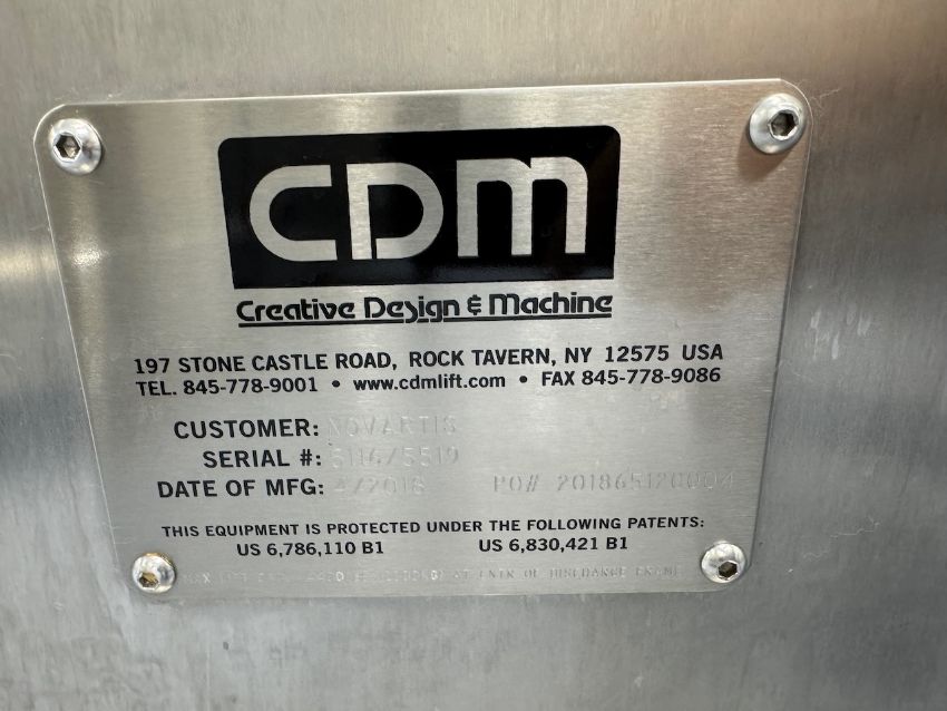CDM Stainless Steel Tote Lift With Allen Bradley Touchscreen HMI Controller. SN# 5116/5519. Asset# 31001019. (100B). HIT# 2398519. First Floor. Asset Located at 4700 International Drive, Wilson, NC 27893.