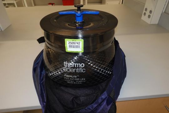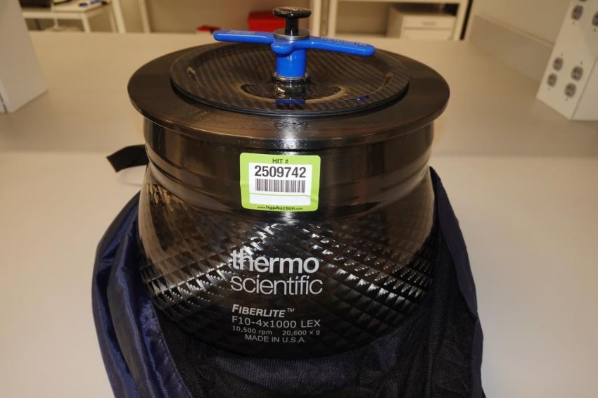 Thermo Scientific F10-4x1000 LEX FiberLite Centrifuge Rotor, 10,500 rpm, 20,600g. Made In USA. HIT# 2509742. Bldg. 7. Asset Located at 112 S Duke St., Durham, NC 27701.