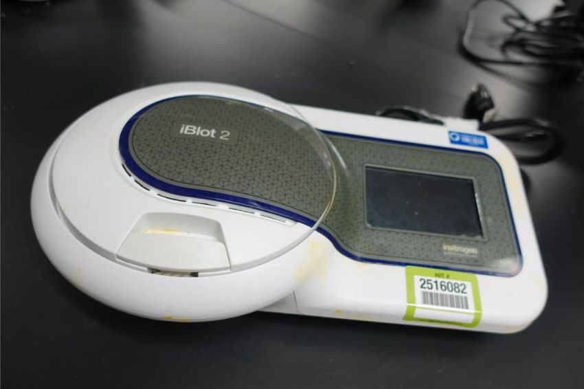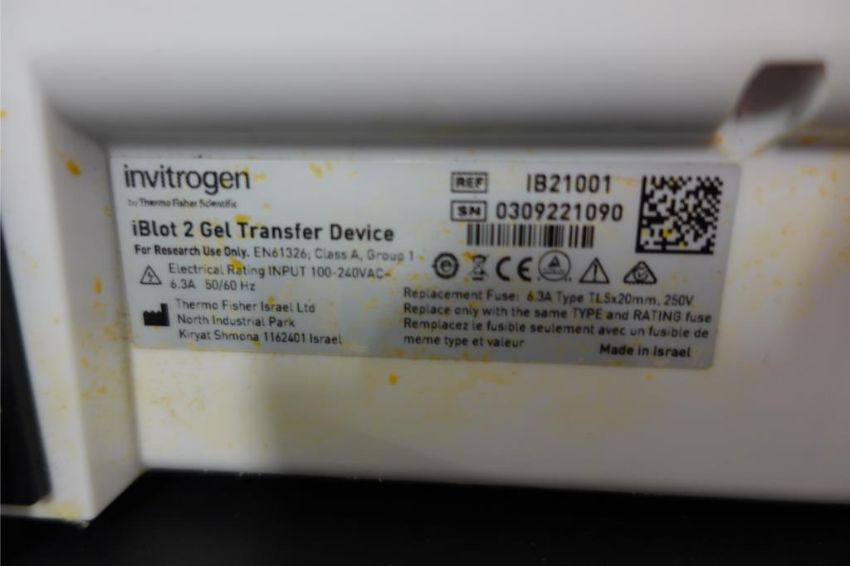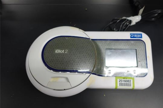 Thermo Scientific Invitrogen iBlot 2 Gel Transfer Device, 240 v, 60 Hz, 6.3 AMPS. SN# 309221090. Asset# 230379. HIT# 2516082. Asset Located at 112 S Duke St. STE 1B, Durham, NC 27701.
