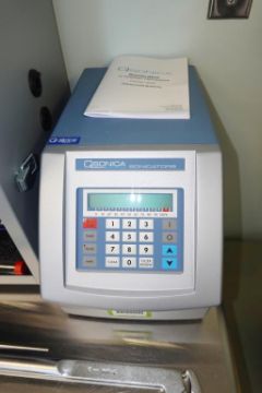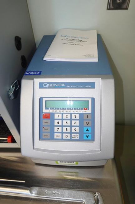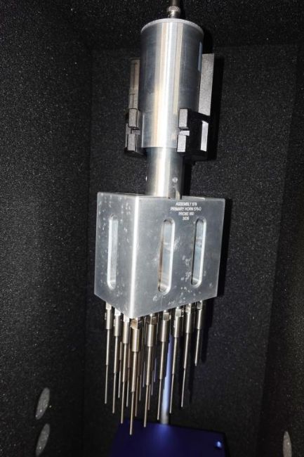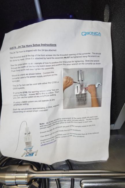 Qsonica Q500 Sonicator With Assembly 579 24-Tip Primary Horn 578-D, Probe 660 3636 & 220-B Probe, Quietizing Enclosure & Lab Jack. SN# 123709AT-11-21. Asset# 230612. HIT# 2509694. Asset Located at 112 S Duke St., Durham, NC 27701.