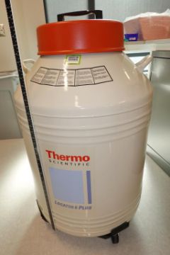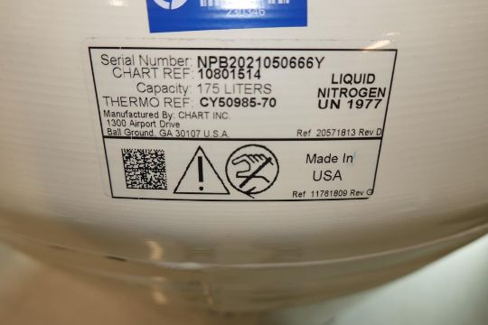Thermo Scientific Locator Plus Mobile Liquid Nitrogen Dewar With Six Racks, 175-Liter Capacity . SN# NPB2021050666Y. Asset# 230346. HIT# 2509739. Bldg. 7. Asset Located at 112 S Duke St., Durham, NC 27701.