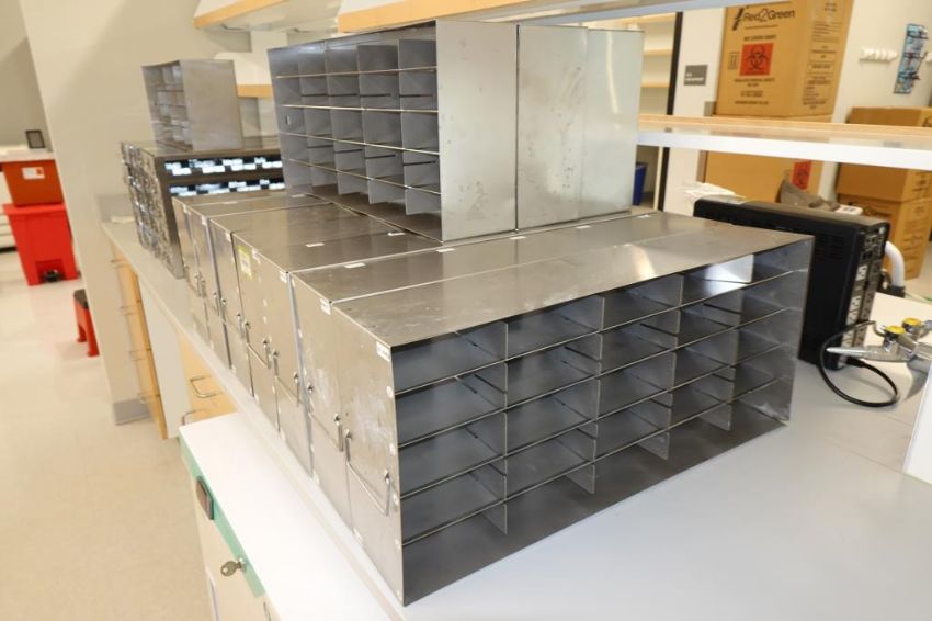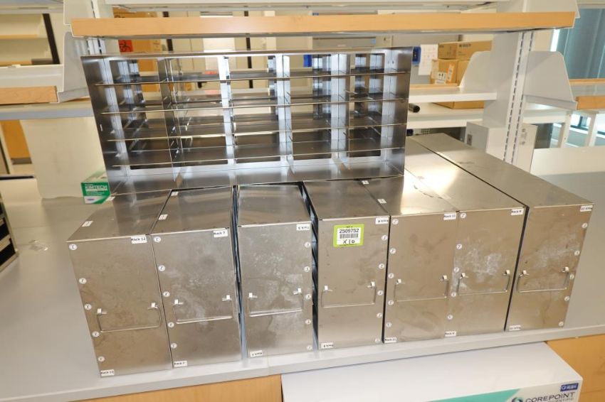 (Lot of 10) Stainless Steel Minus -20 to-80 Freezer Racks. HIT# 2509752. Bldg. 7. Asset Located at 112 S Duke St., Durham, NC 27701.