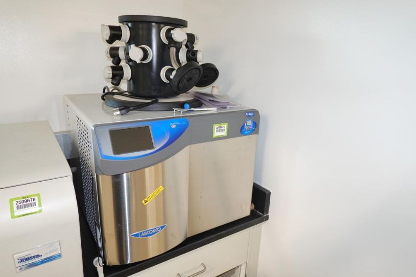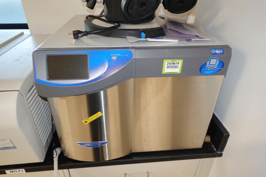 Labconco 710402000 FreeZone 4.5 Liter, Minus -84C/-119C Complete Freeze Dryer/ Lyophilizer System With Edwards Model RV8 Vacuum Pump. SN# 210308860 C. Asset# 230052. HIT# 2509679. Asset Located at 112 S Duke St., Durham, NC 27701.