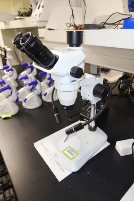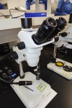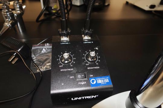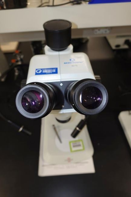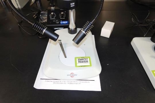 Microscope Central AccuScope 3075 Trinocular Microscope With (Qty 2) Eyepieces & Unitron Dual Flex Fiber Light. SN# 2401014. Asset# 230212. HIT# 2509727. Asset Located at 112 S Duke St., Durham, NC 27701.