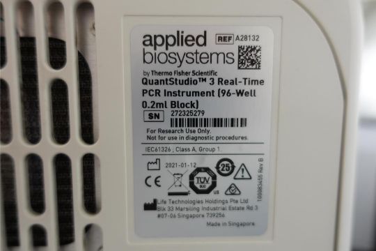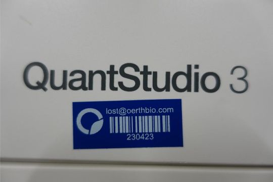 Thermo Scientific QuantStudio3 Touchscreen PCR System, 96 Well, 0.2 ml Thermal Block Sample. SN# 272325279. Asset# 230423. HIT# 2516050. Asset Located at 112 S Duke St. STE 1B, Durham, NC 27701.