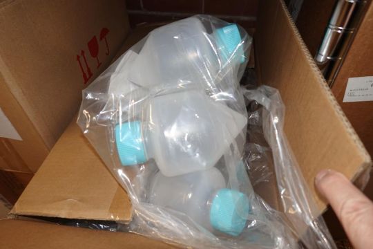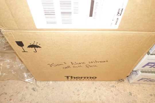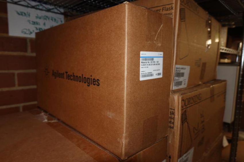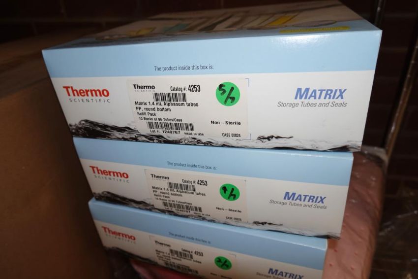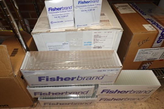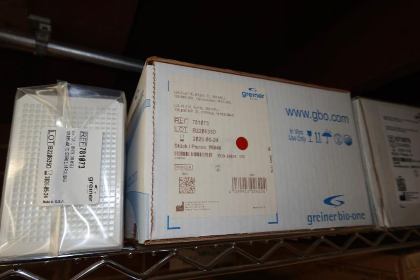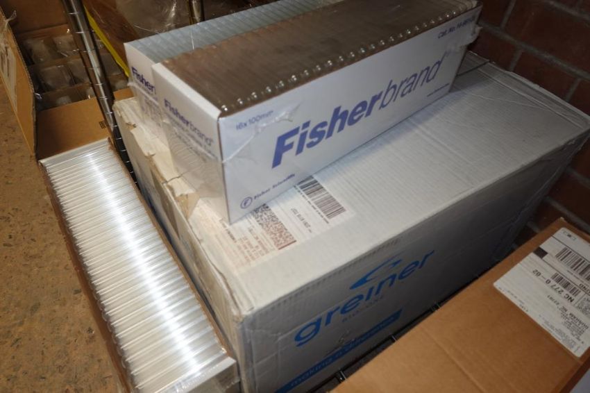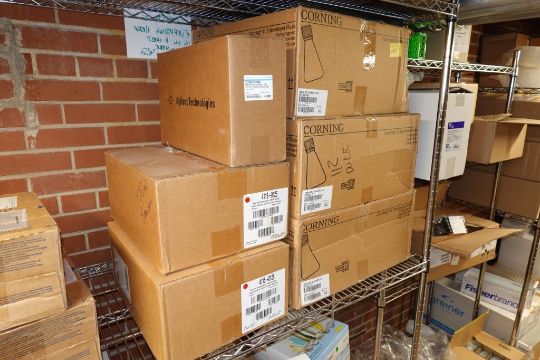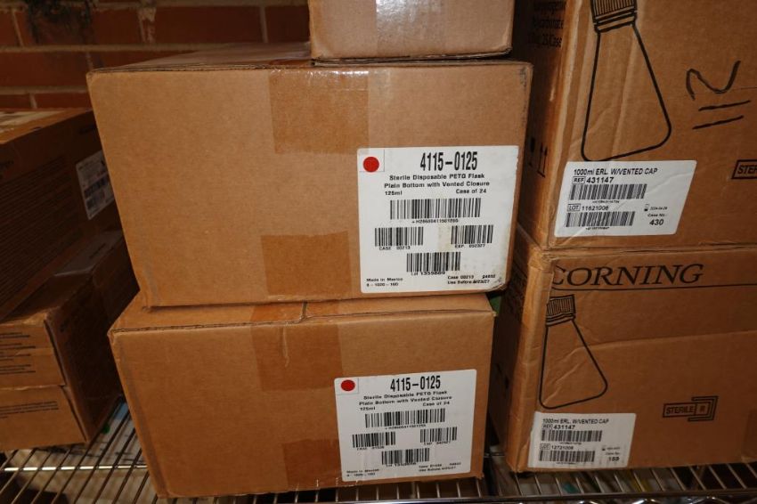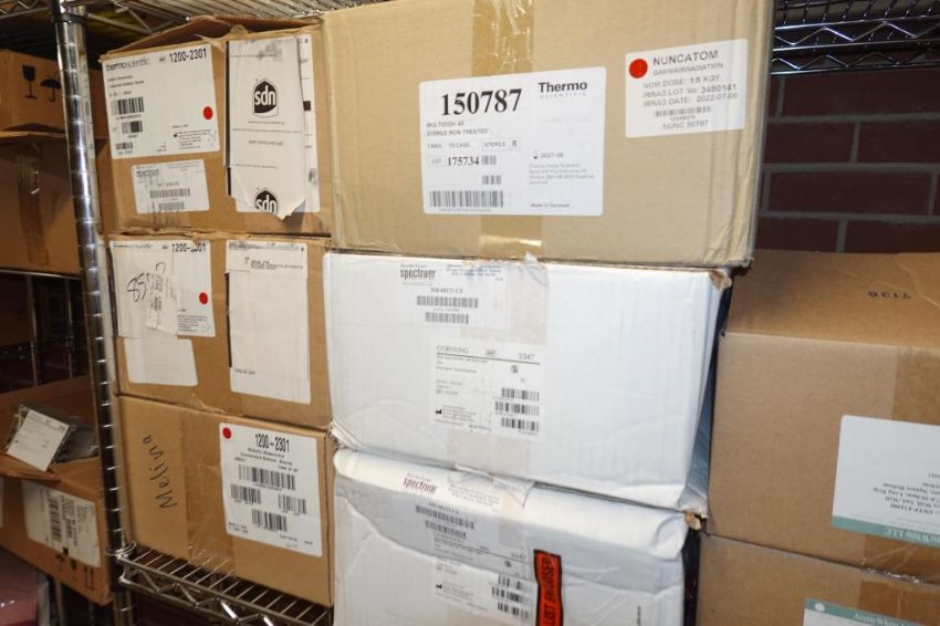 (1-Lot) Assorted Lab Consummables & Racks To Include Assorted Thompson Optimum Groth Plastic Flask Supply, MoleTek Filter Tips Supply, Corning 1L Erlenmeyer Flasks Supply, Fisherbrand Transfer Pipet Supply, Thermo Scientific Matrix 1.4 mL Alphanum Tube Supply, Greiner White 384 Well Sterile LIA-Plate Supplt, Thermo Scientific Robotic Reservoirs, Eppendorf Conical Tube Supply, Fisherbrand Disposable Glass Culture Tubes, CellPro 24-Well Tissue Culture Tubes Supply And More! Includes (Qty 3) Lab Storage Racks. As Shown. HIT# 2509770. Main Lab. Asset Located at 112 S Duke St., Durham, NC 27701.