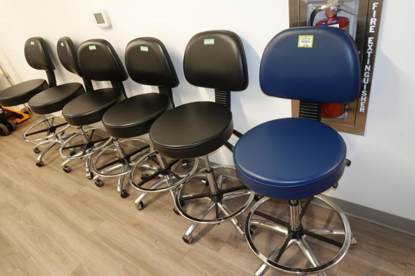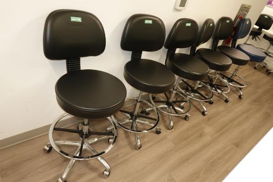 (Lot of 6) Black Lab Chairs, (Qty 5) Black, (Qty 1) Blue. HIT# 2509766. Main Lab. Asset Located at 112 S Duke St., Durham, NC 27701.