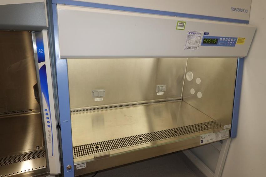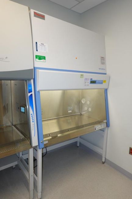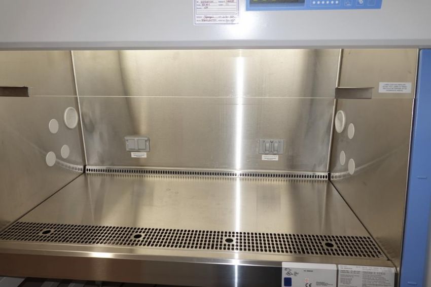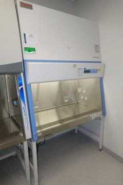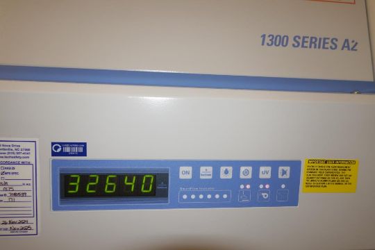 Thermo Scientific 1375 4' ft Bio Safety Cabinet With All Stainless Steel Interior, Lighting, UV Lighting, Power Outlets & Slide Down Protective Glass Shield. 1300 Series A2BSC #4. SN# 300502534. Asset# 230418. HIT# 2509738. Bldg. 7. Asset Located at 112 S Duke St., Durham, NC 27701.
