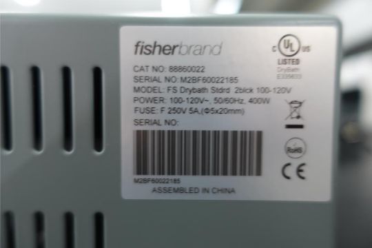 Fisherbrand FS Drybath Stdrd 2blck 100-120V Digital 2-Block Dry Bath,120 v, 60 Hz, 400 W. SN# M2BF60022185. HIT# 2516107. Asset Located at 112 S Duke St. STE 1B, Durham, NC 27701.